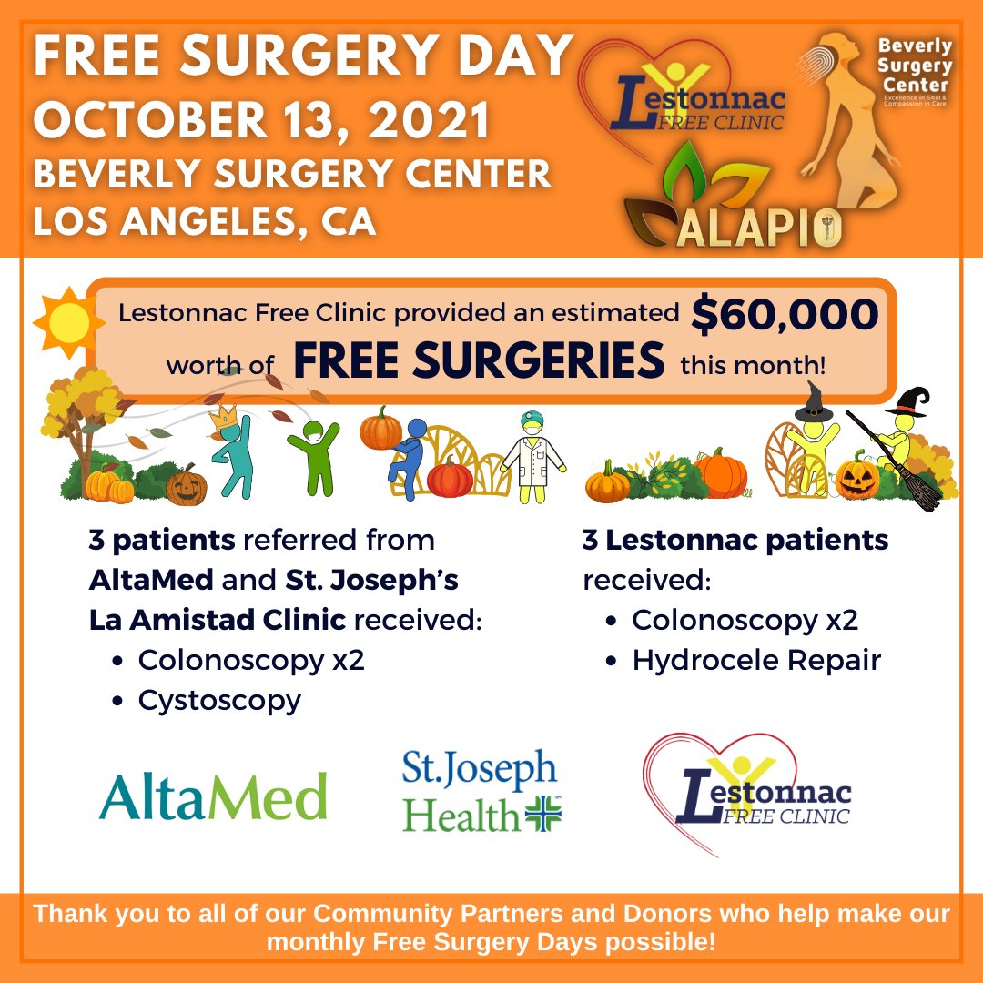 Lestonnac Freeclinic On Twitter October 13th Was Free Surgery Day Lestonnac Free Clinic With Alapio And The Beverly Hills Surgery Center Provided 60 000 Worth Of Surgeries To Low Income And Uninsured Patients Thank